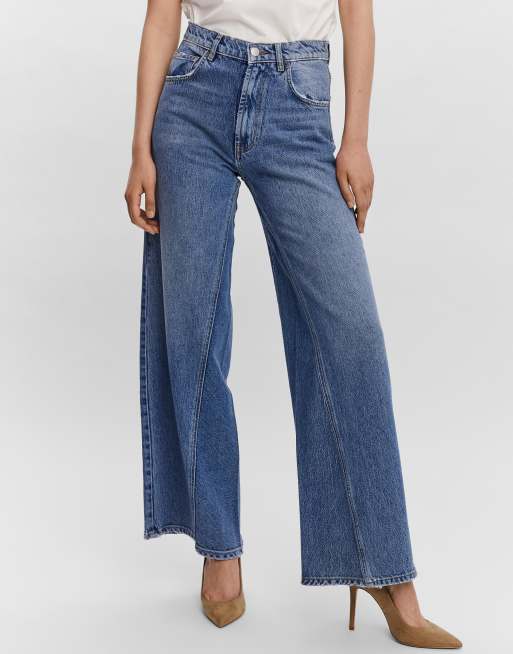 Vero Moda – AWARE – Blåtvättade jeans med vida ben och dekorativ söm