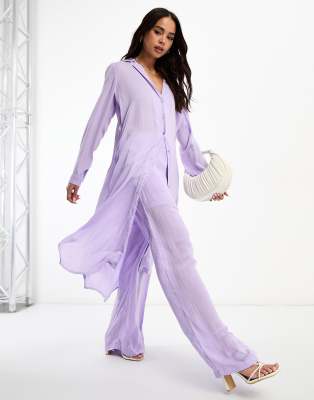 Vero Moda – Aware – Ljuslila, lång och åtsmitande skjorta, del av set