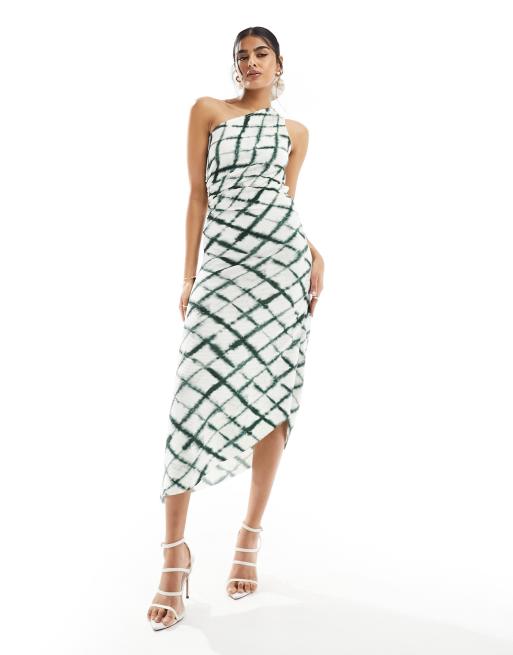 Vero Moda – Batikmönstrad, rutig maxiklänning med plissering och enaxlad design