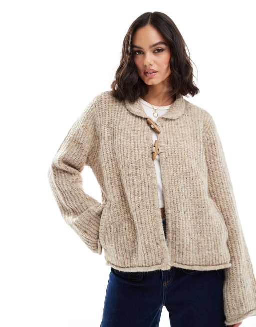 Vero Moda – Beige, kraftig, stickad kofta med dragsko