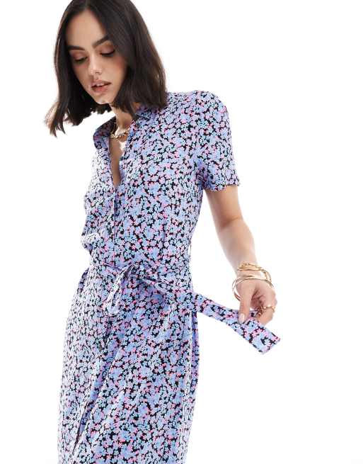 Vero Moda – Blå blommig skjortklänning i maxilängd med knäppning