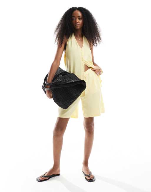 Vero Moda – Blekgult set med shorts med midjeknytning och kostymväst med halterneck