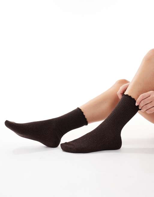 Vero Moda – Chokladbruna, glittriga strumpor med volangkanter