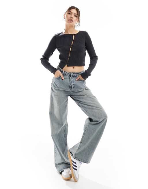 Vero Moda – Grå stentvättad kofta med asymmetrisk knäppning