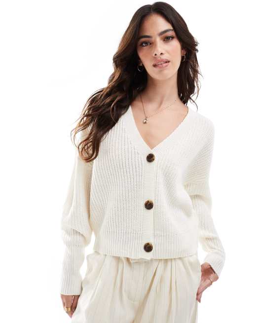 Vero Moda – Gräddvit, ribbad, grovstickad kofta med knappar
