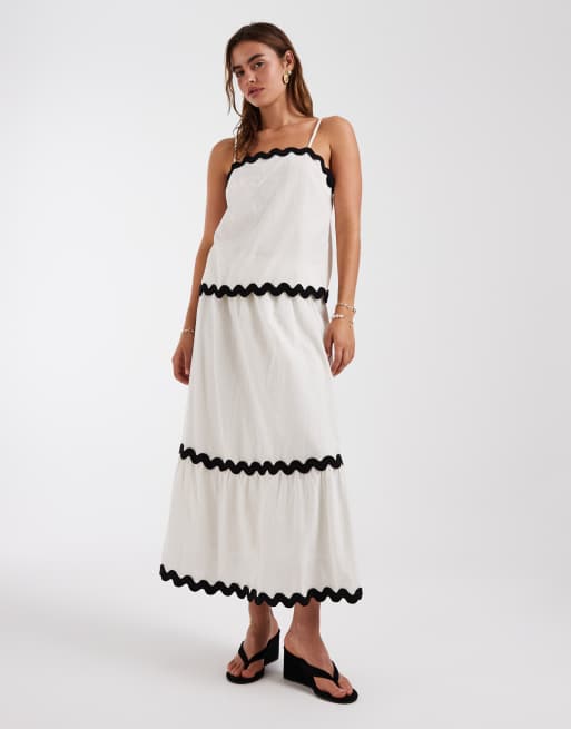 Vero Moda – Gräddvitt set med linne, maxikjol och kontrasterande uddkant