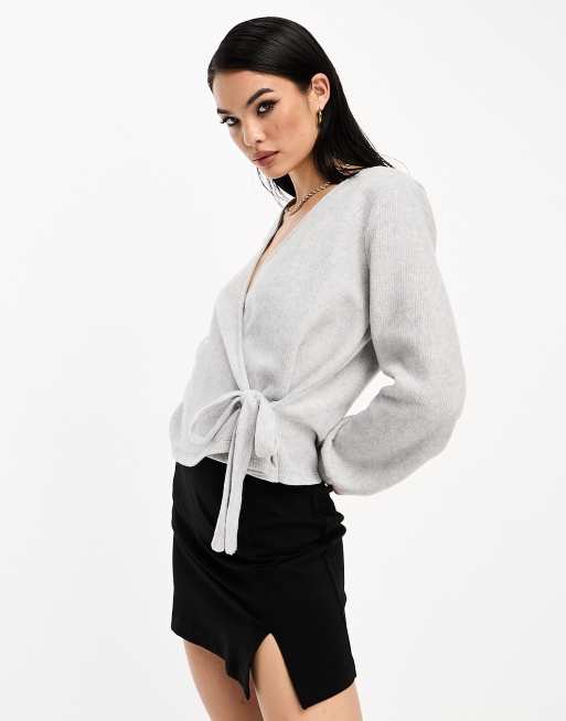 Vero Moda – Gråmelerad kofta i omlottdesign