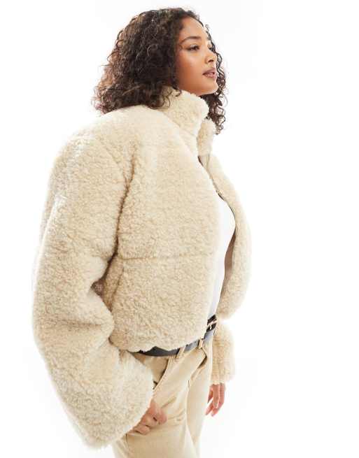 Vero Moda – Havrefärgad, panelsydd, kort jacka i teddy