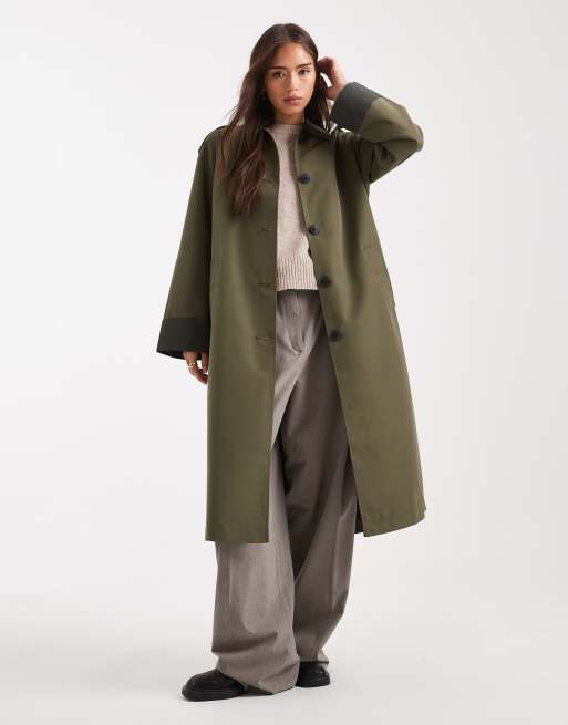 Vero Moda – Kakigrön trenchcoat med kontrastkrage och knappar
