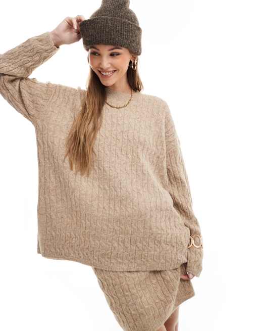 Vero Moda – Kamelfärgad, kabelstickad, slouchy tröja, del av set