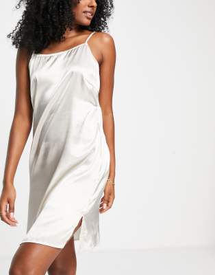 Vero Moda – Krämvitt långt satinlinne med spets baktill