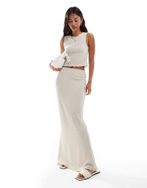 Vero Moda – Ljusbeige, strukturerat set med ärmlös topp och maxikjol