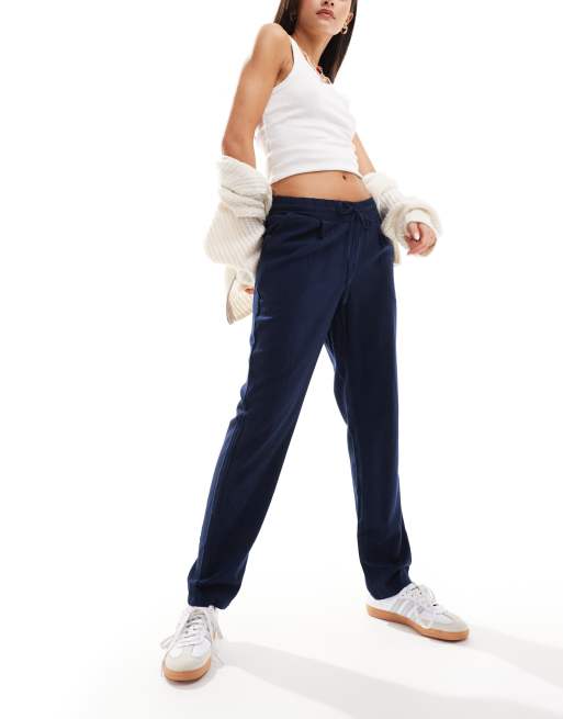 Vero Moda – Marinblå avsmalnande byxor i linneblandning