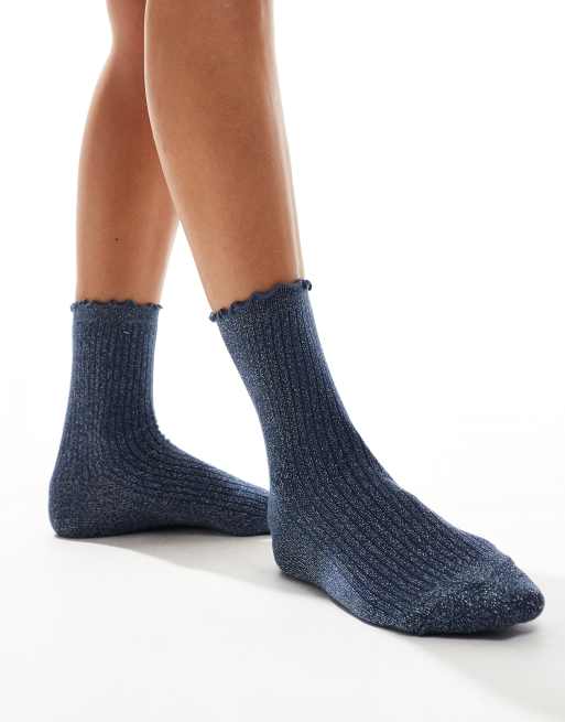 Vero Moda – Marinblå, glittriga strumpor med volangkanter