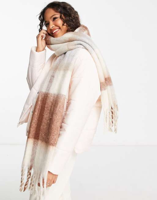 Vero Moda – Neutralfärgad, grovstickad halsduk med rutigt mönster
