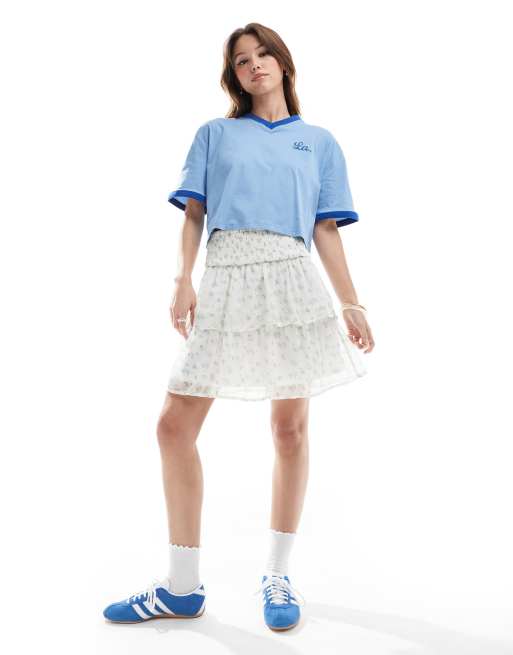 Vero Moda – Smilla – Blå, småblommig och panelsydd minikjol