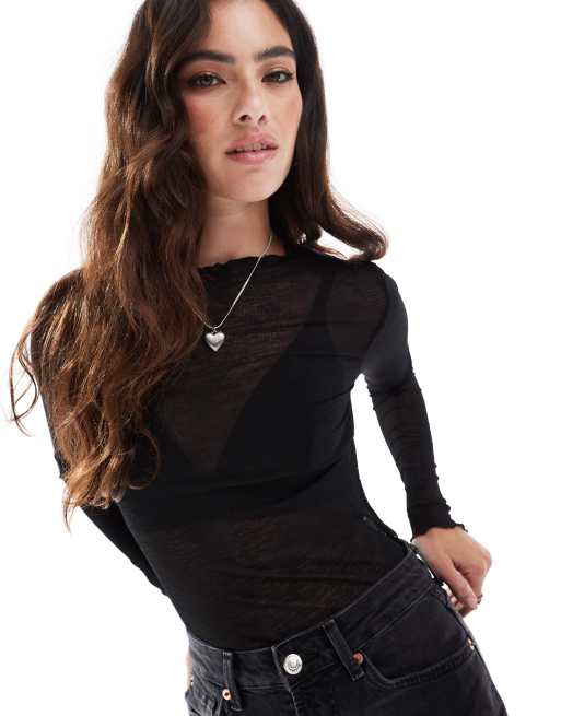 Vero Moda – Svart, långärmad topp i fin jersey med uddkant