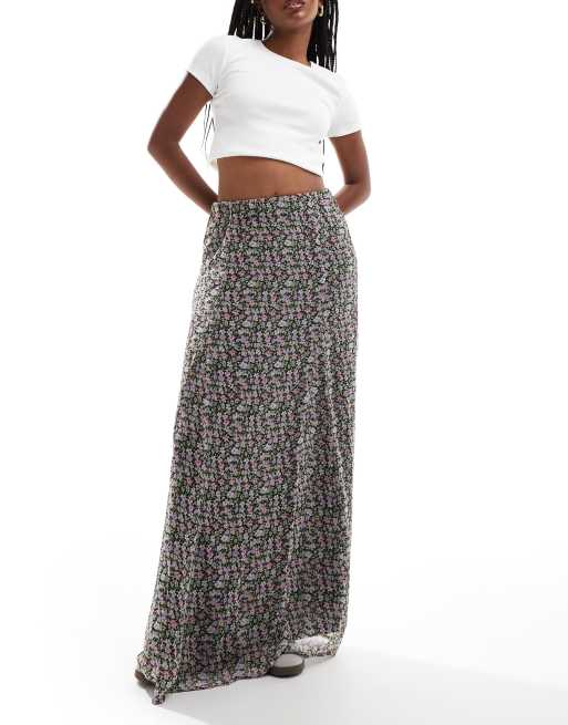 Vero Moda – Svart, småblommig maxikjol