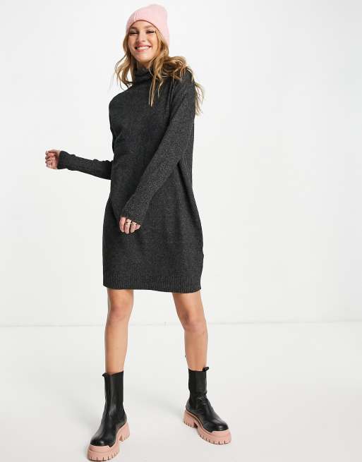 Vero Moda – Svartmelerad tröjklänning med polokrage