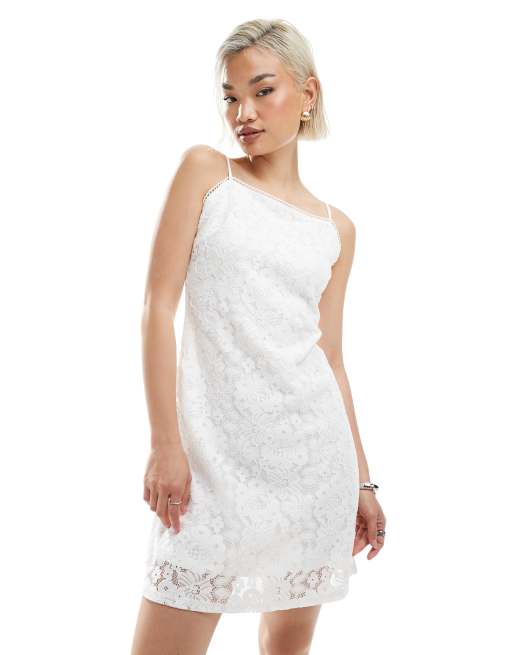 Vero Moda – Vit miniklänning i spets med fyrkantig halsringning