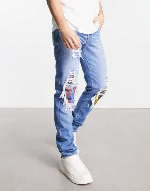 Versace Jeans Couture – Blå slitna jeans med lagningar