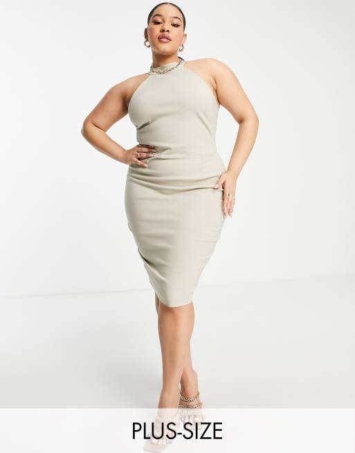 Vesper – Plusstorlek – Gräddvit midiklänning med hög krage