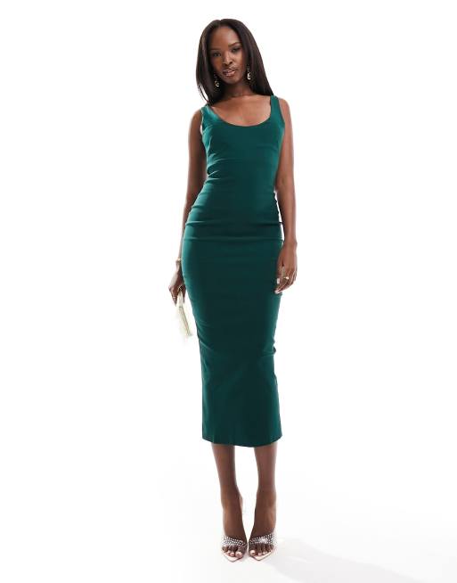 Vesper – Skogsgrön midaxiklänning med djup halsringning