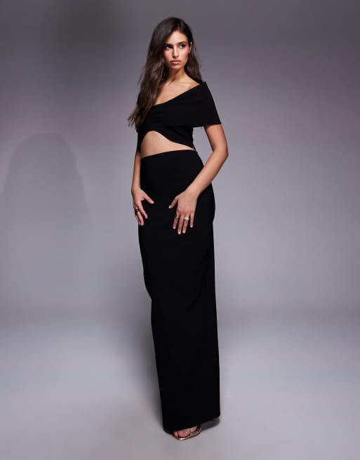 Vesper – Svart, rak maxikjol i bengalin med hög midja, del av set