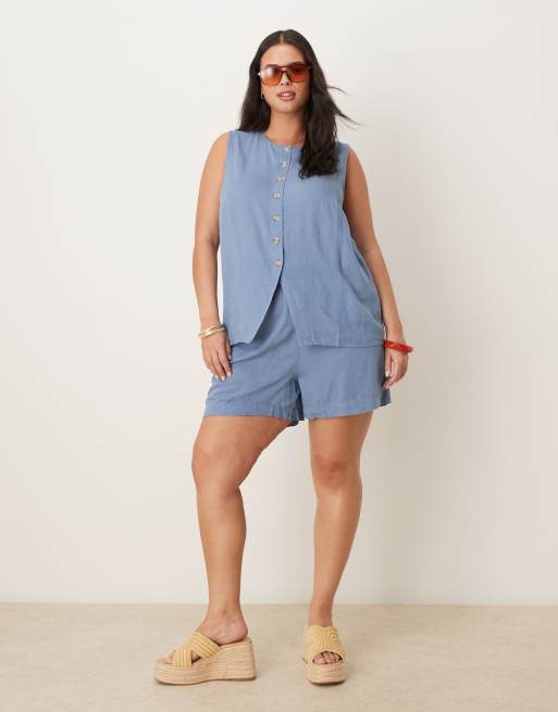 Vila Curve – Blått set med shorts och kostymväst
