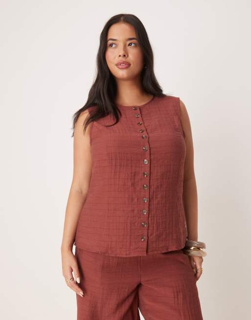 VILA Curve – Hennafärgat, rutigt linne med rund halsringning, del av set