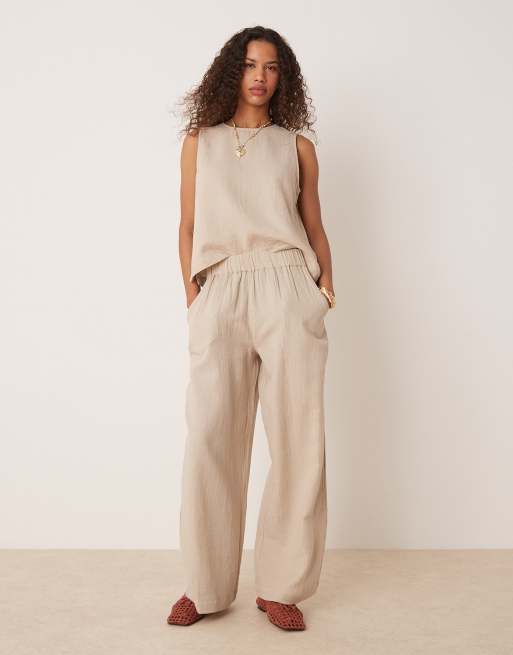 Vila – Beige, krinklade byxor med vida ben, del av set