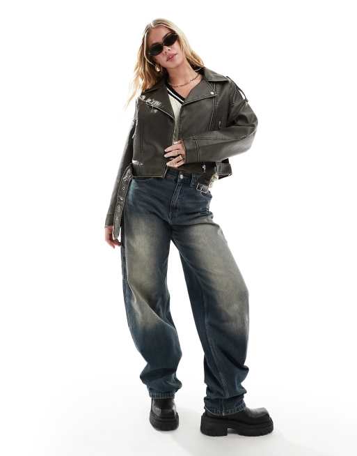 Vila – Bleksvart bikerjacka i oversize av läderlook