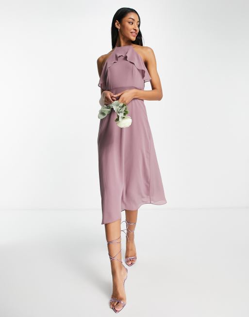 Vila – Brudtärnor – Lila midiklänning med volangdetaljer