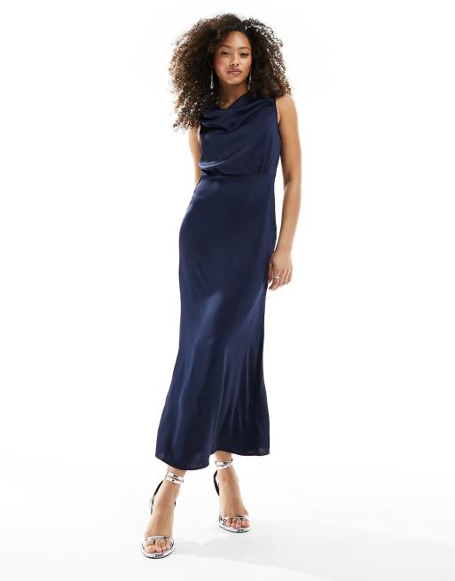 Vila – Brudtärnor – Marinblå maxiklänning med draperad ringning