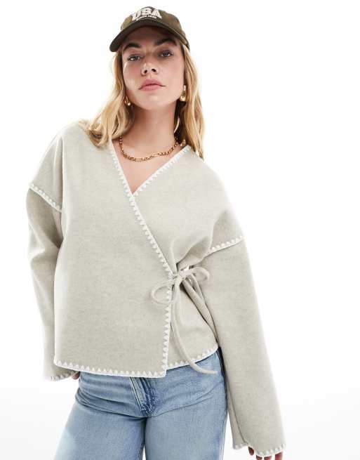 Vila – Gräddvit kofta med omlottdesign framtill och kontrasterande sömmar