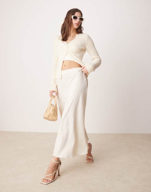 VILA – Gräddvit midikjol med dobbyvävd struktur