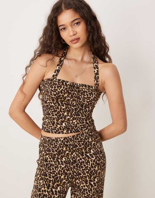 Vila – Leopardmönstrad, åtsmitande topp i jersey med halterneck, del av set