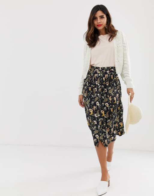 Vila – Paisleymönstrad midikjol i diagonalskuren modell