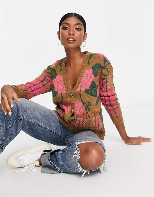 Vila – Rosa, blommig och rutig kofta