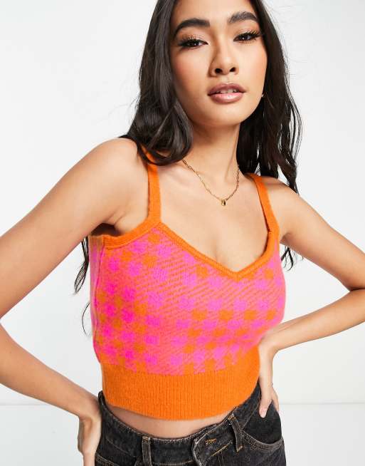 Vila – Rutig stickad topp i kort, färgglad design, del av set