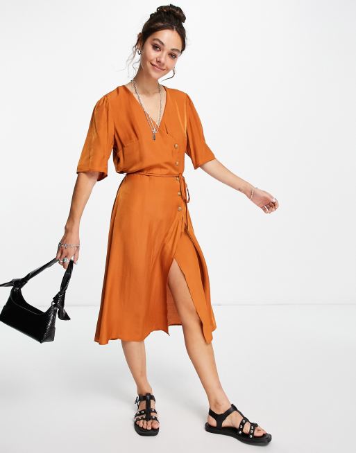 Vila – Terracottafärgad omlottklänning med knappdetaljer