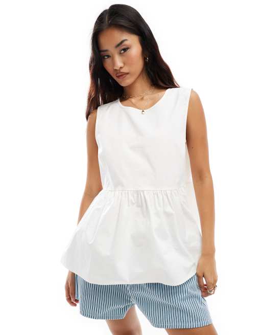 Vila – Vit, ärmlös topp i bomullspoplin