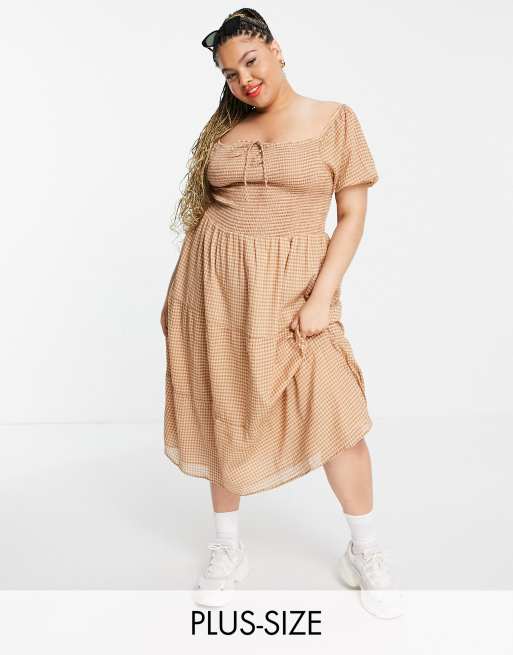 Violet Romance Plus – Rutmönstrad smockad midiklänning