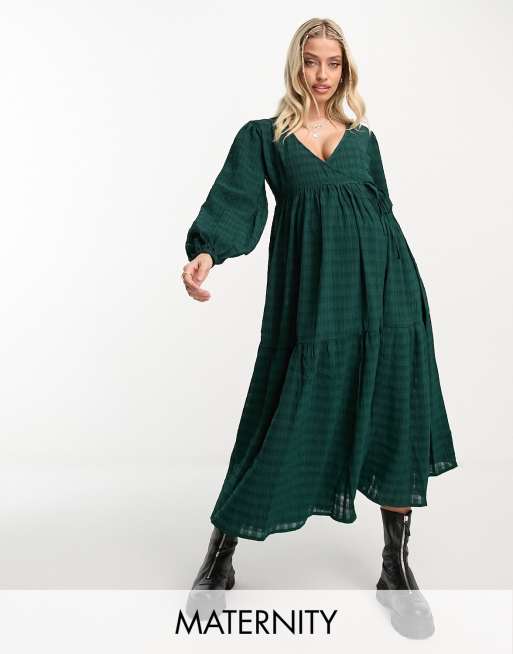 Violet Romance – Mammakläder – Blågrön panelsydd midaxiklänning med omlottdesign framtill
