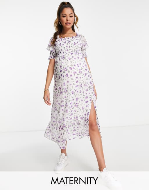 Violet Romance – Mammakläder – Blommig, smockad midiklänning