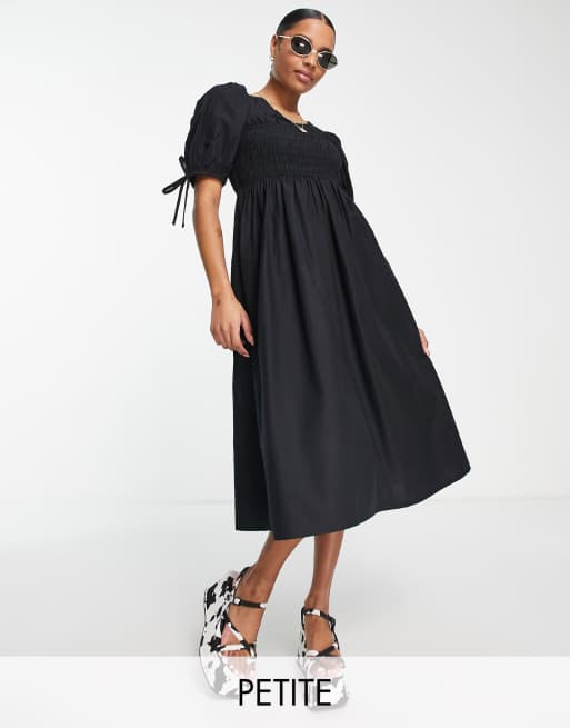 Violet Romance Petite – Svart midiklänning med smockad byst av bomull
