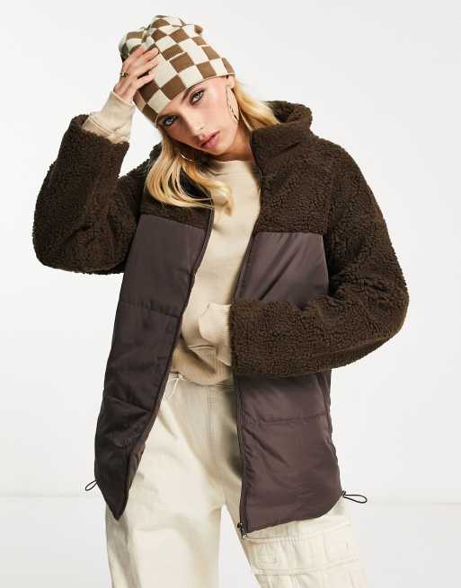 Violet Romance – Chokladbrun pufferjacka med teddydetaljer