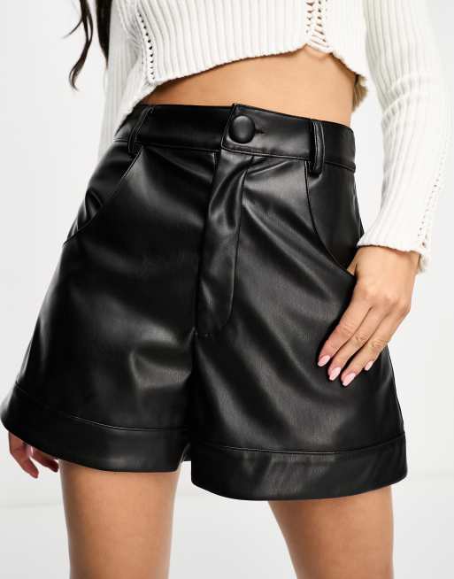 Violet Romance – Svarta shorts i läderimitation med hög midja