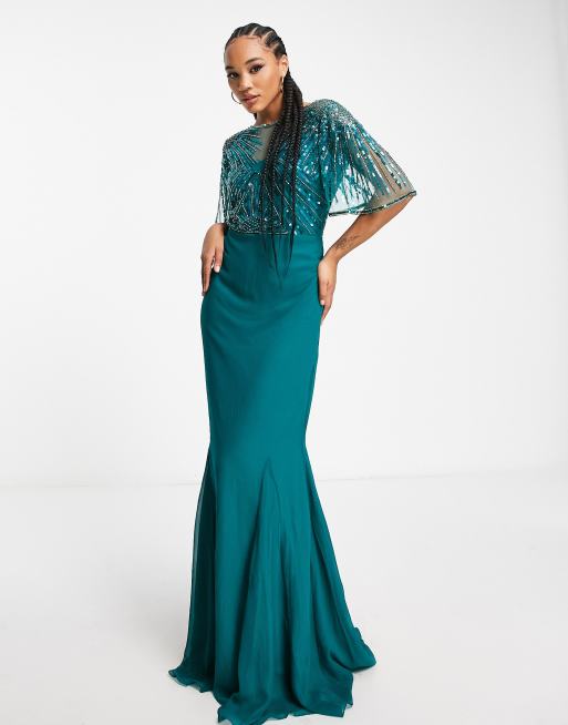 Virgos Lounge – Blågrön, utsmyckad maxiklänning med korta ärmar