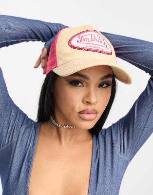 Von Dutch – Nelson – Beige truckerkeps med paljettlogga i manchester, exklusivt hos ASOS